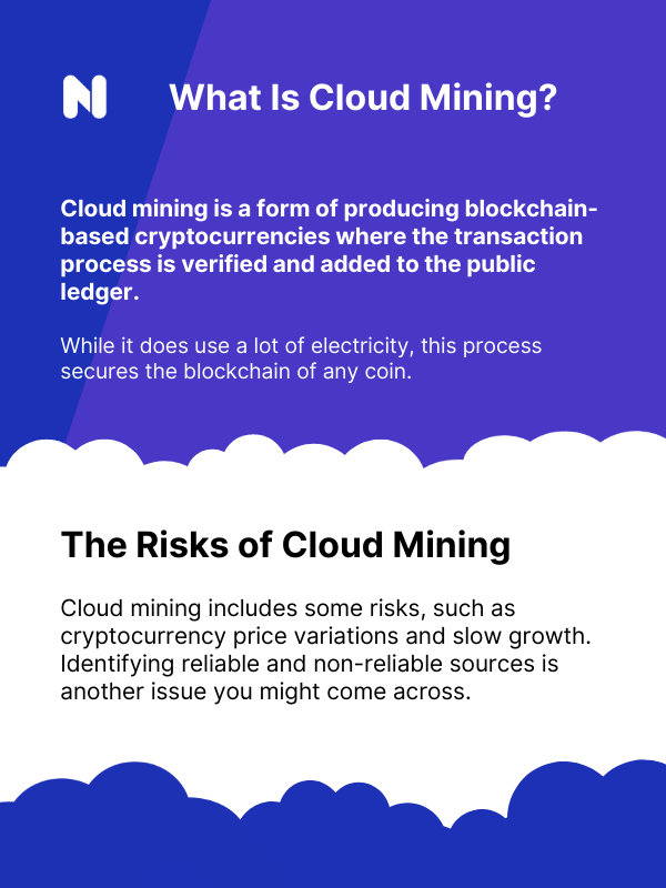 Cloud mining is the form of producing blockchain-based cryptocurrencies where the process of transaction is verified and added to the public ledger. Cloud mining and mining, in general, represents one of the fastest-growing trends due to the features and control that customer has.
